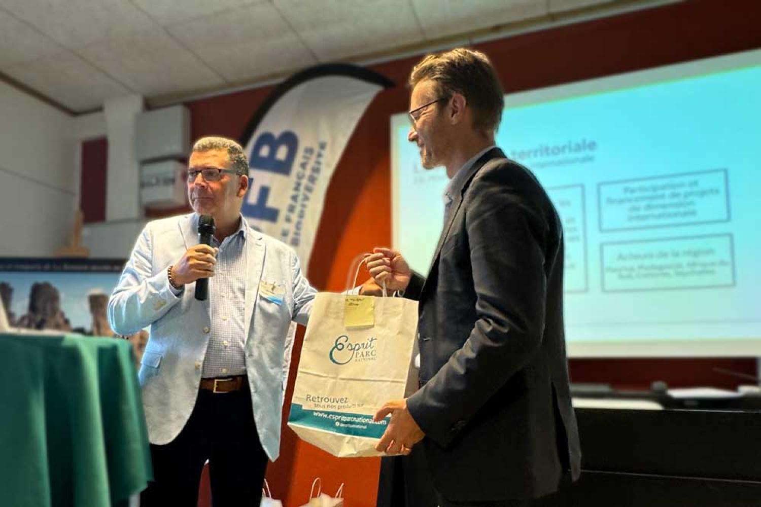 Le Directeur du Parc national et la responsable adjointe de son antenne Sud ont mis en avant le travail mené avec les propriétaires privés dans le cadre du projet Renfobiodiv.